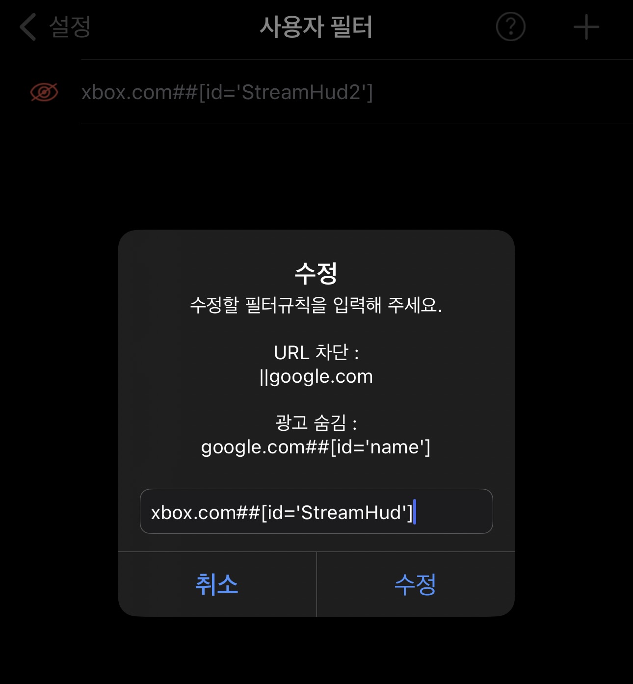 CSS Selector를 이용해 HUD를 가리는 방식입니다. 유니콘과 같은 광고 차단 앱이 필요합니다.
